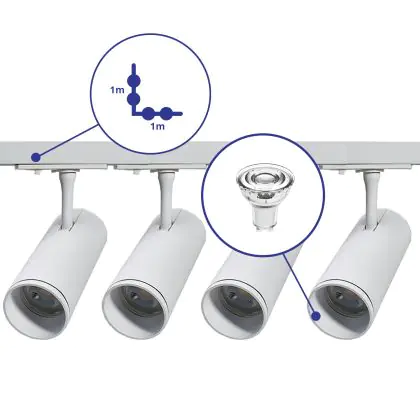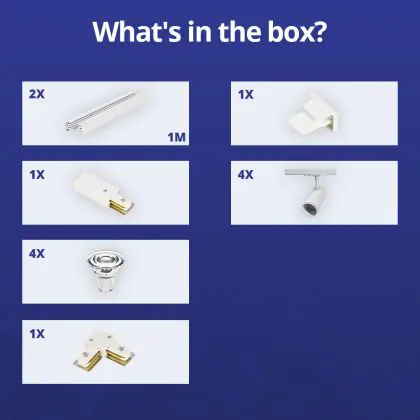 | Fabrikantnaam | Complete L shaped 1-Phase Track Set White incl. 4x Spot fixture + GU10 2700K 3W Dim – 1 x 1 meter i | |