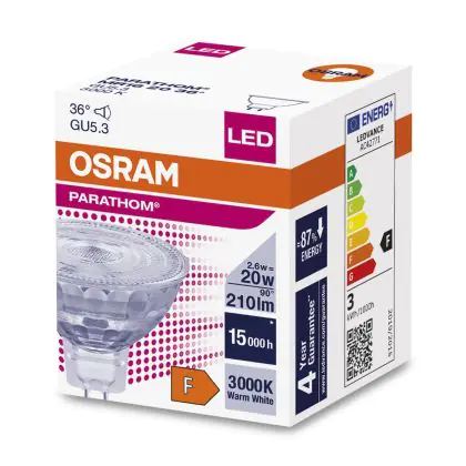 | Fabrikantnaam | LEDPMR162036 2,6W/830 12V GU5.3 FS1OSRAM | |